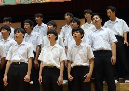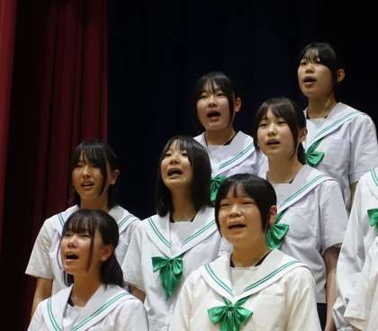 クラスごとに写真で合唱の様子を紹介します。音源の公開をすることはできません。写真でご想像ください。