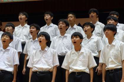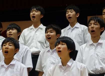 クラスごとに写真で合唱の様子を紹介します。音源の公開をすることはできません。写真でご想像ください。