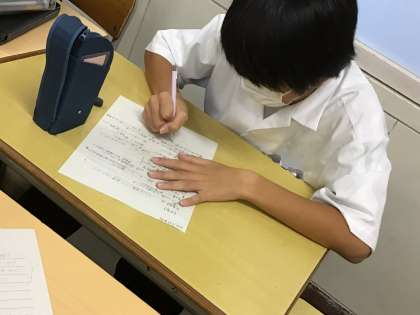 講師の方の講演を聞いたり、仲間の考えを聞いたりしたことで栄養バランスについて実感し、まとめる姿が見られました。