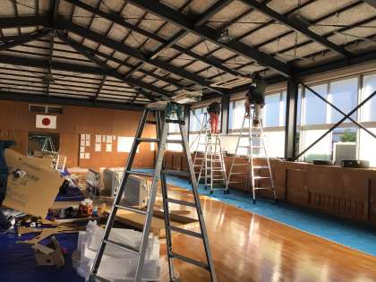 武道場のエアコン設置が始まりました。5基付きます。