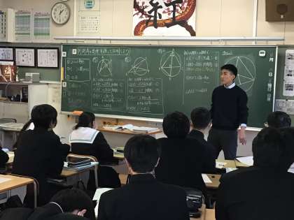 円周角の定理を使って証明をしていく「前の時間に習得したことを、本時で活用していく授業」でした。