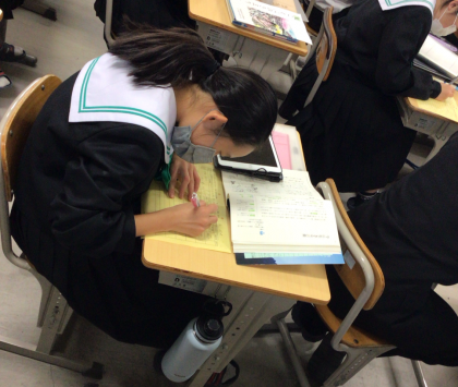 11/26 故事成語を使って語りたい(1年国語) 公開日 2024/11/26 更新日 2024/11/26 生徒の活動 【授業力向上:情報収集に力点を置いた授業】 故事成語とはどんなものかを学び、一人調べで故事成語を集めます。集めた故事成語のうち、「この故事成語を使って体験を伝えたい」と活用する気持ちを高めていきます。 この時間は故事成語を集める情報収集に力点を置いた授業でしたが、随所で教師がゴールを示すことで、生徒たちは見通しをもち、安心して学習していました。