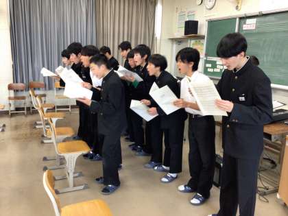 12/13 合唱隊が録音!(2年総合) 公開日 2024/12/13 更新日 2024/12/13 各学年から 2年生は自然教室に向けて、それぞれのスタッフに分かれて活動することが増えてきました。活動そのものが自立に近づいています。 合唱隊の子たちは作詞から自分たちで行ったオリジナルの合唱曲に挑戦しています。想像を絶する挑戦です。今日はその見本の声を録音していました。音の録音なのに表情まで一生懸命なところに、この子達のプライドを感じます。