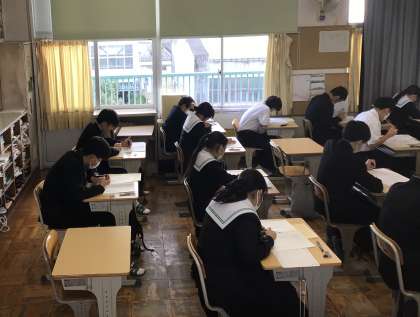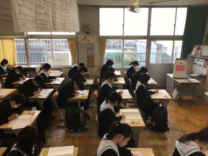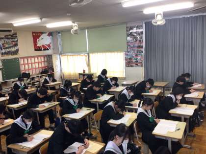 3年生は今週末から入試が一気に始まります。今日は一日かけて、5教科の模擬テストです。朝の8時10分登校から先生たちの指導にも熱が入ります。