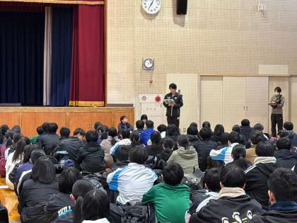 生徒には、学校でできていることが外の世界でできるとは限らないとしたうえで、大人になるための2つの心構えを伝えました。
