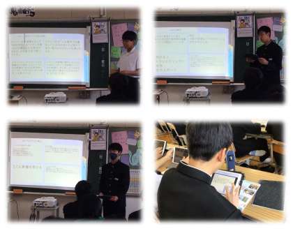 1/24 時事問題を授業に生かす(3年社会) 公開日 2025/01/24 更新日 2025/01/24 各学年から 3年の社会科の授業で、アメリカ合衆国大統領のトランプ氏が出したいくつかの政策について、生徒が個別に調べて自分の意見を発表する授業を行っていました。 タブレットや教科書資料で十分に情報収集し、整理分析、まとめた後で口頭発表をするのですが、生徒が短時間で意見をまとめ、さらに「○○○が僕の考えです!」と自分の主張まで述べる姿に、社会人一歩手前の3年生らしさを感じました。