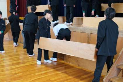 準備と片付けは1年生が行いました。先輩になる心の準備にもなりました。