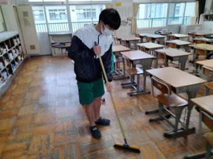 授業参観と入学説明会で多くの方が来校するということで、きれいな学校でお迎えするために有志が集まりました。15分間、集中して取り組む姿は大変立派でした。参加してくれた皆さん、ありがとうございました。
