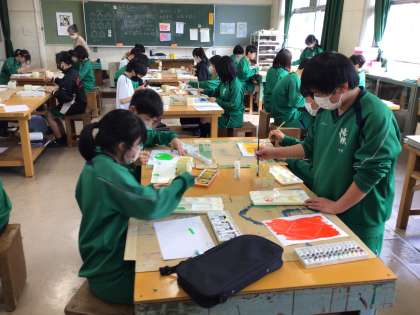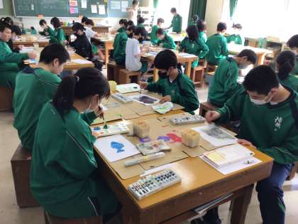 2/5 カラーリングの基礎(2年美術) 公開日 2025/02/05 更新日 2025/02/05 生徒の活動 「補色を選べは、目立つのか・・・」そんなつぶやきが聞こえてきました。単元の導入でまずは技能を習得しています。ここで学んだことを活用して、次の時間から本格的な作品づくりが始まります。