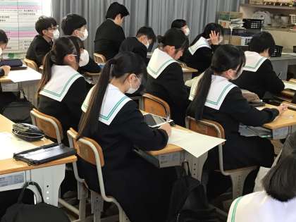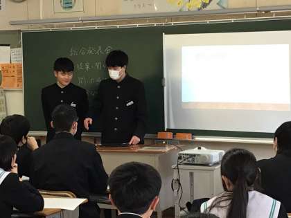 2/7 最後のまとめまで丁寧に(3年総合) 公開日 2025/02/07 更新日 2025/02/07 各学年から 3年3組が総合の時間を使ってSDGsの発表を行っていました。卒業前、受検の合間を使って最後の仕上げです。 発表者が目線を上げて、みんなに伝えようとしている誠実な姿を見て、うれしくなりました。また、聞き手も大切な言葉をプリントにメモするなど、聞き方も素敵でした。3年生の最後にふさわしい姿になってきました。
