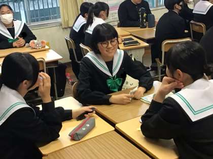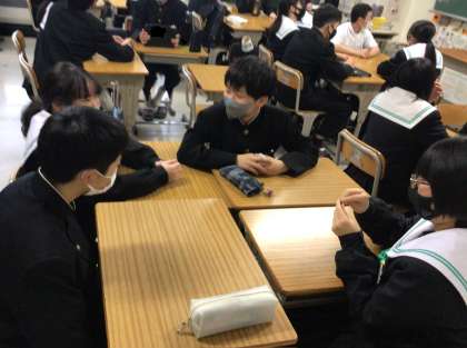 リモートで全学級をつなぎ、生徒会から出されたお題について、それぞれがイメージするものについて話し合いました。同じものをイメージしても理由がさまざまであるため、違いを楽しみながら交流する姿が見られました。