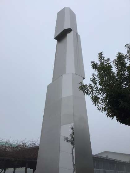 今朝、霧の中を生徒が登校してきました。霞んでいる翔竜の塔を仰ぎ、「高いね〜」と声をかけている生徒たちがいました。