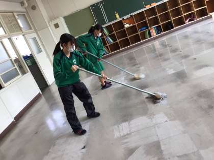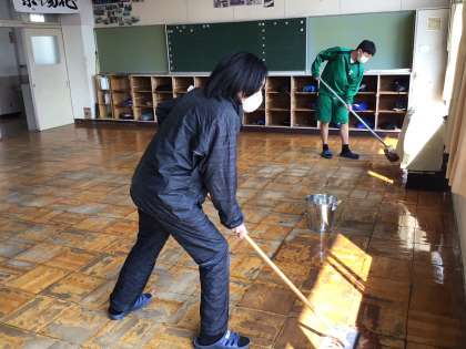 たっぷりと含ませたワックスを薄く丁寧に伸ばし、床をコーティングしていきました。
