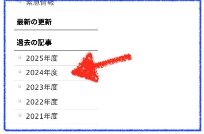なお、2024年度(令和6年度)に掲載された記事につきましてはホームページ左下の◇過去の記事「2024年度」メニューをクリックすると閲覧が可能となっております。