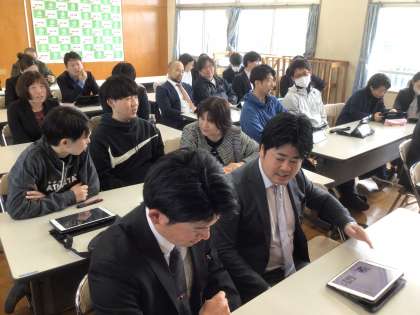 数学のA先生が、先生を中学生に見立てて授業をする研修を行いました。