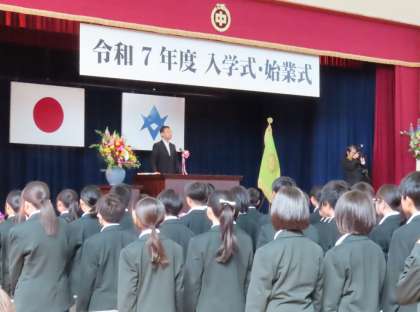 心地よい緊張で始まり、式辞の最中も笑顔がたくさん見られました。また、退場の際も司会者が小声で「おめでとう」と声をかけると、ニコッと微笑んだり会釈をしたりする生徒がとても多くて、とても良い印象を受けました。きっとご家庭や小学校で愛情たっぷりに育てていただいたからでしょう。こんな心豊かな子たちと、3年間一緒に学ぶことができる幸せを強く感じました。