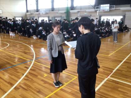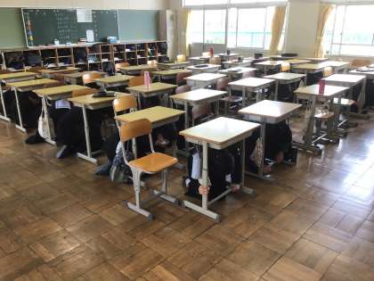 本日の午後、地震対応訓練と火災を想定した避難訓練を行いました。地震対応訓練は、抜き打ちで訓練放送を流す形で実施しました。廊下から近くの教室に避難する生徒や、トイレの中でじっと待つ生徒がいるなど、多種多様な状況を経験することができました。その後の避難訓練は、緊張感をもってスムーズに避難を完了させました。大災害においては、個人で冷静な判断をする力が求められます。ご家庭でも、自宅で被災したときの動きをシミュレーションしてみてください。