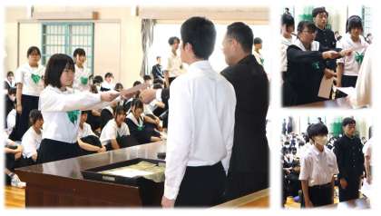 録音して記録に残したいくらいの「はい!」の返事に、プライドと責任感を感じました。認証後に、「学校を任せます。生徒会役員、生徒議会、学級委員会が中心となって全校生徒で学校を創ってください。そして一人一人成長していこう。」と一言添えました。