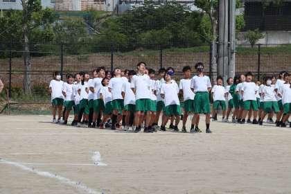 2年生闘竜祭リハーサルの様子です。起立、腰おろして休め、一つ一つの動きに磨きをかけています。闘竜祭本番に向け、入退場まで全力で行う姿はとてもかっこいいです。