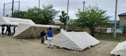 今年度も闘竜祭のテント設営をボランティアで行いました。保護者の方の中には、息子さんが部活動の大会にもかかわらず「子どもが全員竜神でお世話になって、最後になりますから・・・」と参加されたり、「子どもが卒業したら子どもの一緒に来るかも・・・」と話してくださる方がみえたりと、感謝でいっぱいの時間でした。