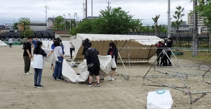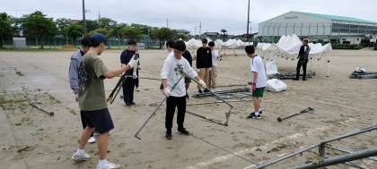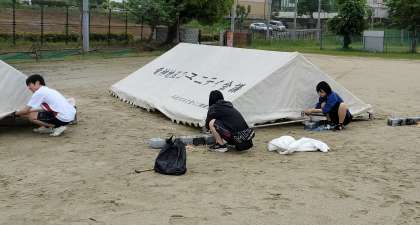 卒業生のテント設営の速さには驚きました。作り方のコツが分かったら、まるで会社のように役割分担し、スムーズにテント設営をしていました。仕事を終えて帰っていく後ろ姿が、映画のアルマゲドンのようで、かっこよかったです。また、卒業生と会えるのを楽しみにしています。本当にありがとう!