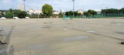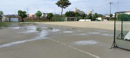 生徒席と本部、保護者観覧場所は特に水が浮いています。