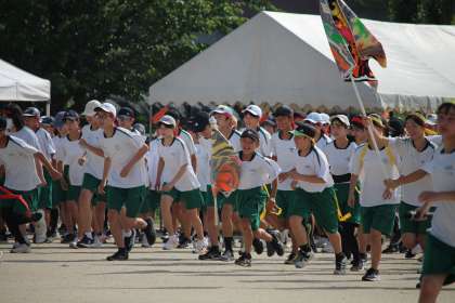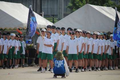 選手入場です。 顔は真剣、声は全開、ダッシュで入場。