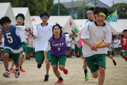 クラスのプライドをかけて全員でつなぎます。