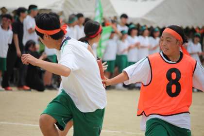 クラスのプライドをかけて全員でつなぎます。