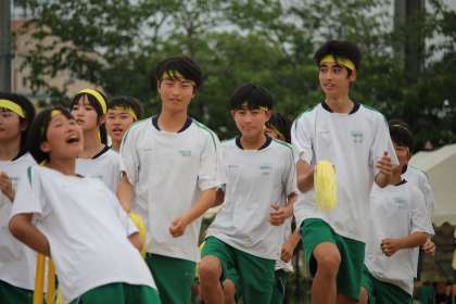 今年は、参観された皆様が見やすいように、そして、ライバルとして高め合った他の団も見やすいように、演じる場所を変更してみました。生徒会執行部の工夫です。