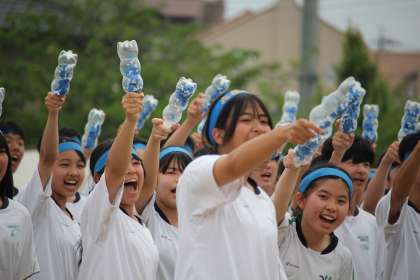 今年は、参観された皆様が見やすいように、そして、ライバルとして高め合った他の団も見やすいように、演じる場所を変更してみました。生徒会執行部の工夫です。