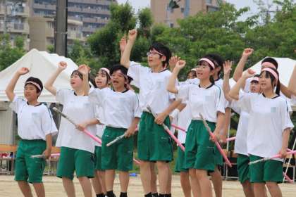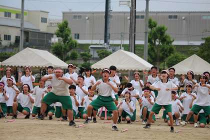 今年は、参観された皆様が見やすいように、そして、ライバルとして高め合った他の団も見やすいように、演じる場所を変更してみました。生徒会執行部の工夫です。