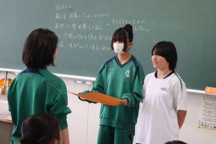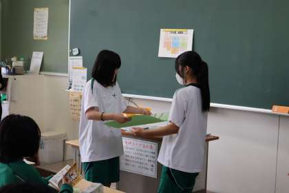 5/26(月)、闘竜祭で互いに汗を流した同じ団の先輩、後輩に感謝のメッセージを送る生徒会企画「ドラゴンポスト」の贈呈が行われました。応援団長や応援団員が協力学級を訪れ、作成したメッセージカードを手渡しました。カードには、「先輩方が種目のアドバイスをしてくれたおかげで、当日は最高記録を出せた」「ベンチで声をはりあげて応援してくれて嬉しかった」といった感謝の言葉が綴られていました。今後も、生徒会が主体となって生徒会テーマ「感謝」を伝える機会が計画されています。