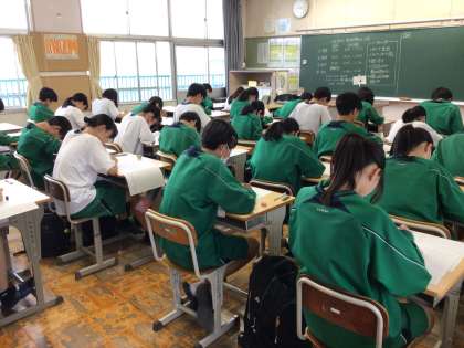 6/3 第1回定期テスト 初日 公開日 2025/06/03 更新日 2025/06/03 生徒の活動 本日より第1回定期テストです。 あいにくの雨で登校が大変でした。靴下まで濡れている子もいるでしょう。それでも気持ちを切ることなく、集中して取り組んでいます。 ※写真は上から1年、2年、3年です。