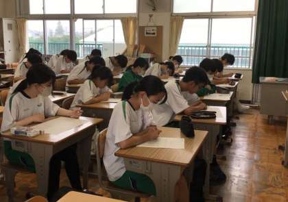 6/9 最後のクラス合唱に向けて(3年) 公開日 2025/06/09 更新日 2025/06/09 生徒の活動 3年生もRJTの時間を利用して合唱コンクールの曲を決めていきます。候補曲がたくさんあり、曲を聴くだけで時間がかかり、曲を決める学級会はまだ先です。 曲を真剣に聞いてメモする姿から、クラスの誇りをかけて曲を創りあげていく光景が目に浮かぶようでした。今から楽しみです。