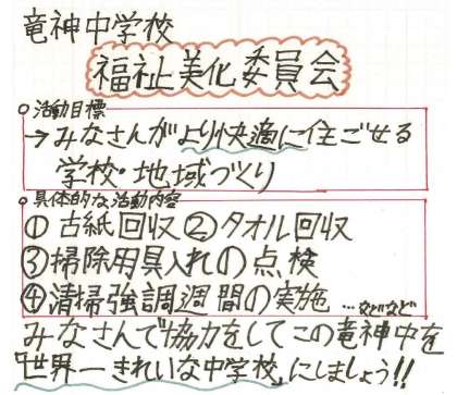生徒会の福祉・美化委員会と協働で行うことでPTAの負担を軽減し、生徒の活動とすることで生徒会活動の活性化を図るねらいがあります。