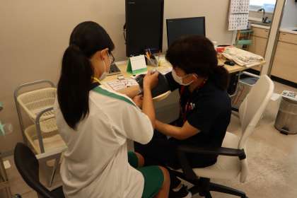2年生は1日から3日までの3日間で職場体験を行なっていました。事業所まで公共交通機関を使いながら、生徒の力で向かいました。自動車の洗車や点検、ほかには血圧測定など体験していました。