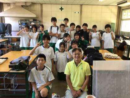 夏休みにもかかわらず多くの生徒がボランティア作業に参加してくれました。トイレのデザインをプラボードに描き、カットしていく作業を行なっています。グループごとに分担し、寸法を測ったり、デザインの配置を工夫したりしながら、楽しく作業を進めました。
