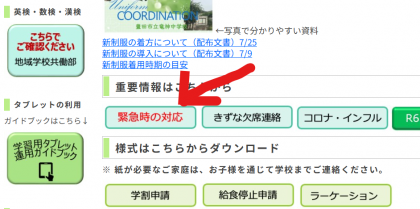 台風時の基本的な対応はこちら 公開日 2025/09/03 更新日 2025/09/03 お知らせ 台風時の対応は、TOP画面のボタン(写真の←)から確認してください。 テスト3日目にかかる可能性があります。その対応については、遅くても4日昼までにきずなネットでお伝えします。市が5日の給食をどうするか決めるタイミングがありますので、きずなネットで配信後、さらにもう一度配信することも考えられます。