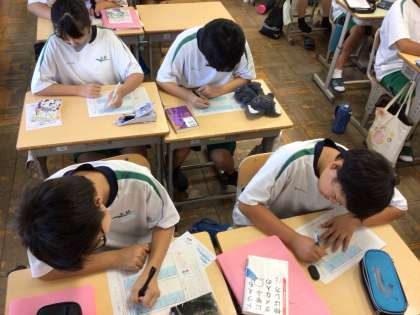 講師の方の見本を見て、生徒たちはびっくりしていましたが、自分の好きな本を選んだのですぐに気持ちを入れて、資料を作っていました。