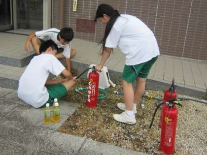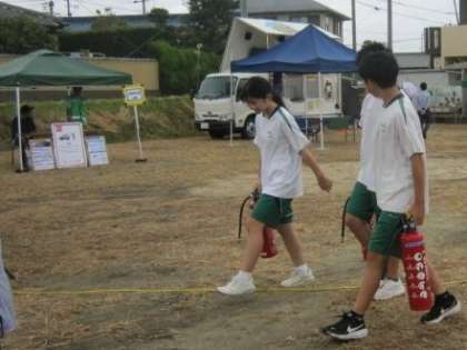 竜神の誇り☆竹下自治区防災訓練 ボランティア活動 公開日 2025/09/18 更新日 2025/09/18 生徒の活動 9月13日(土)、竹下自治区で防災訓練が開催されました。ボランティア参加の生徒3名が力を合わせて消火器への水補給と運搬を繰り返し行い、消火訓練を円滑に進めることができました。竜神中学校の誇りです。