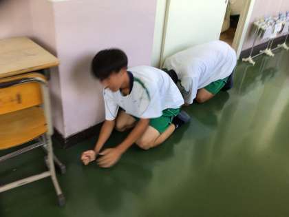 生徒に知らせず、一部の先生も知らない状態で2回、放課中にその場でしゃがんで自分の命を守るシェイクアウト訓練を行い、19日(金)の授業中に全校避難を行いました。