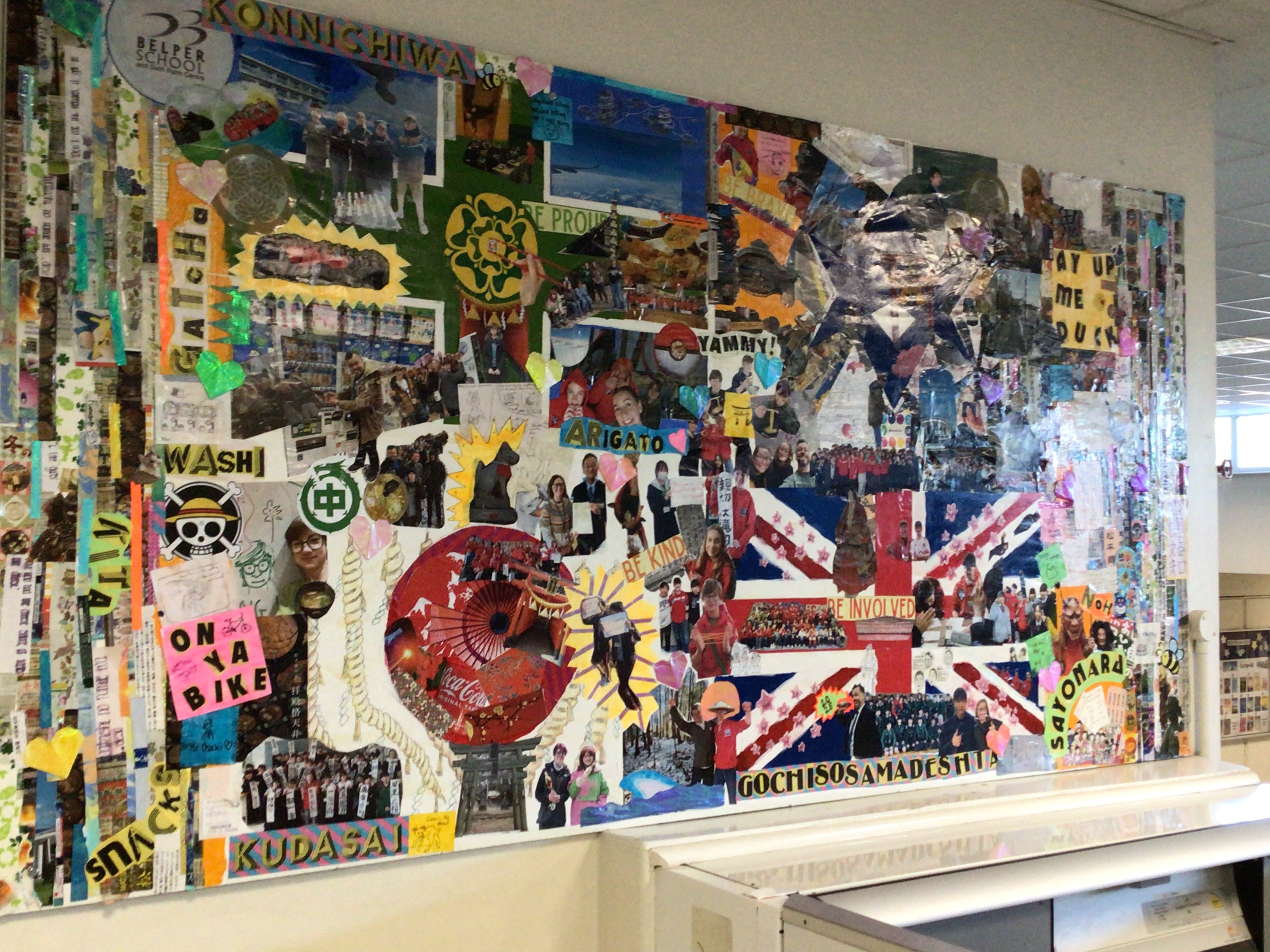 ダービーシャーのBelper Schoolの掲示板に竜神中との交流が大きく装飾されていたそうです。(写真)