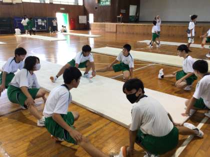 放課だったのですが、ダントツに早く一つのグループが準備運動を始めていました。【写真上】