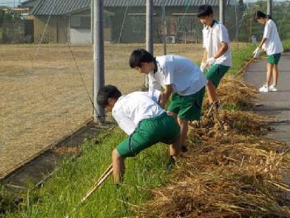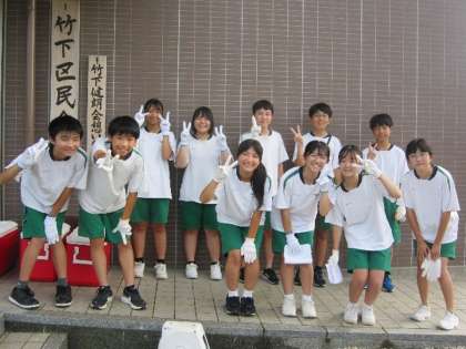 9月21日(日)、竹下自治区で環境美化活動が行われました。参加者受付や緑道花壇の草取り、土手の刈草集積に尽力し、地域の力となりました。竜神中学校の誇りです。