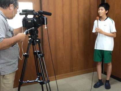 本日、ひまわりネットワーク制作の学校紹介番組「じもちゅー!」の撮影が行われました。勉強や部活動、行事に向けて取り組む生徒の姿が紹介されます。代表生徒はカメラの前で緊張しながらも、堂々とインタビューに答えました。放送については、きずなネットにてお知らせを配信します。