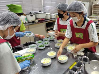竜神の誇り☆子ども食堂(10月) ボランティア活動 公開日 2025/10/27 更新日 2025/10/27 お知らせ 10月19日(日)、竜神交流館で子ども食堂「なないろ竜神」が開催されました。いろいろな野菜を材料にしたおいしい料理を作ったり、きらびやかな飾りづくりをしたりして参加した小学生を楽しませました。竜神中学校の誇りです。