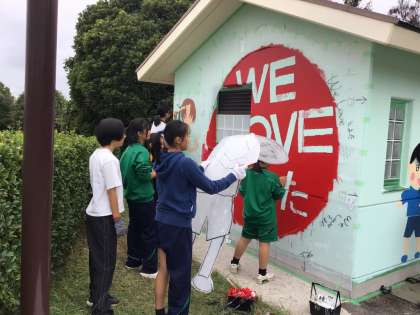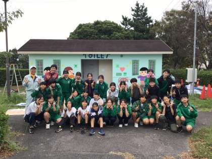 生徒ボランティアで、土橋公園のトイレをペインティングしました。