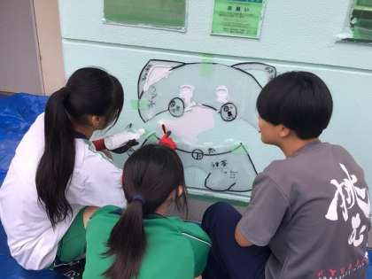 昨年度から豊田市公園緑地課と土橋自治区とともに企画し、生徒ボランティアが中心になり、デザイン、下絵準備と行ってきました。