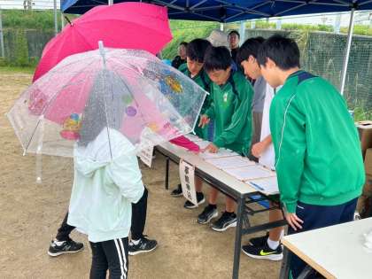 竜神の誇り☆竹中自治区ウォーキング大会 ボランティア活動 公開日 2025/10/28 更新日 2025/10/28 お知らせ 10月19日(日)、竹中自治区でウォーキング大会が開催されました。当日はあいにくの雨模様でしたが、本校中学生の協力で無事最後まで行うことができたようです。また、ボランティア以外にも一緒に運営を手伝った中学生2名、家族と一緒にウォーキング大会に参加した中学生2名がいたそうです。地域行事に積極的に参加してくれたことへの感謝の言葉が学校に届きました。竜神中学校の誇りです。